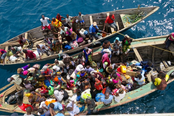 ‘Is it full?’, we asked. His laughter told us the answer. ‘This ship can take 600 people and 200 tonnes of Cargo’. Titus beamed proudly. ‘There’s maybe 50 tonnes and 250 people today’, Joe interjected helpfully.